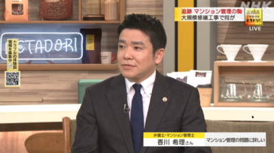 ツイート 2025年12月6日 カテゴリ お知らせ 2025年12月5日に放送されたNHKの「首都圏情報 ネタドリ!」に香川希理代表弁護士が出演しました。追跡 マンション管理の闇 | NHK 東京都銀座の弁護士事務所香川総合法律事務所kagawasougou.com 〒104-0061 東京都中央区銀座一丁目14番10号 銀座松楠ビル2階 TEL:03-6280-4056 ≪Next 【メディア掲載情報】東京弁護士会会報『LIBRA』(2026年1月1日発行) Prev≫ 【メディア掲載情報】東京弁護士会会報『LIBRA』(2025年12月1日発行) 一覧へ戻る お気軽にお問い合わせくださいませ。 お電話でのお問い合わせ 03-6280-4056 メールでのお問い合わせ お問い合わせ